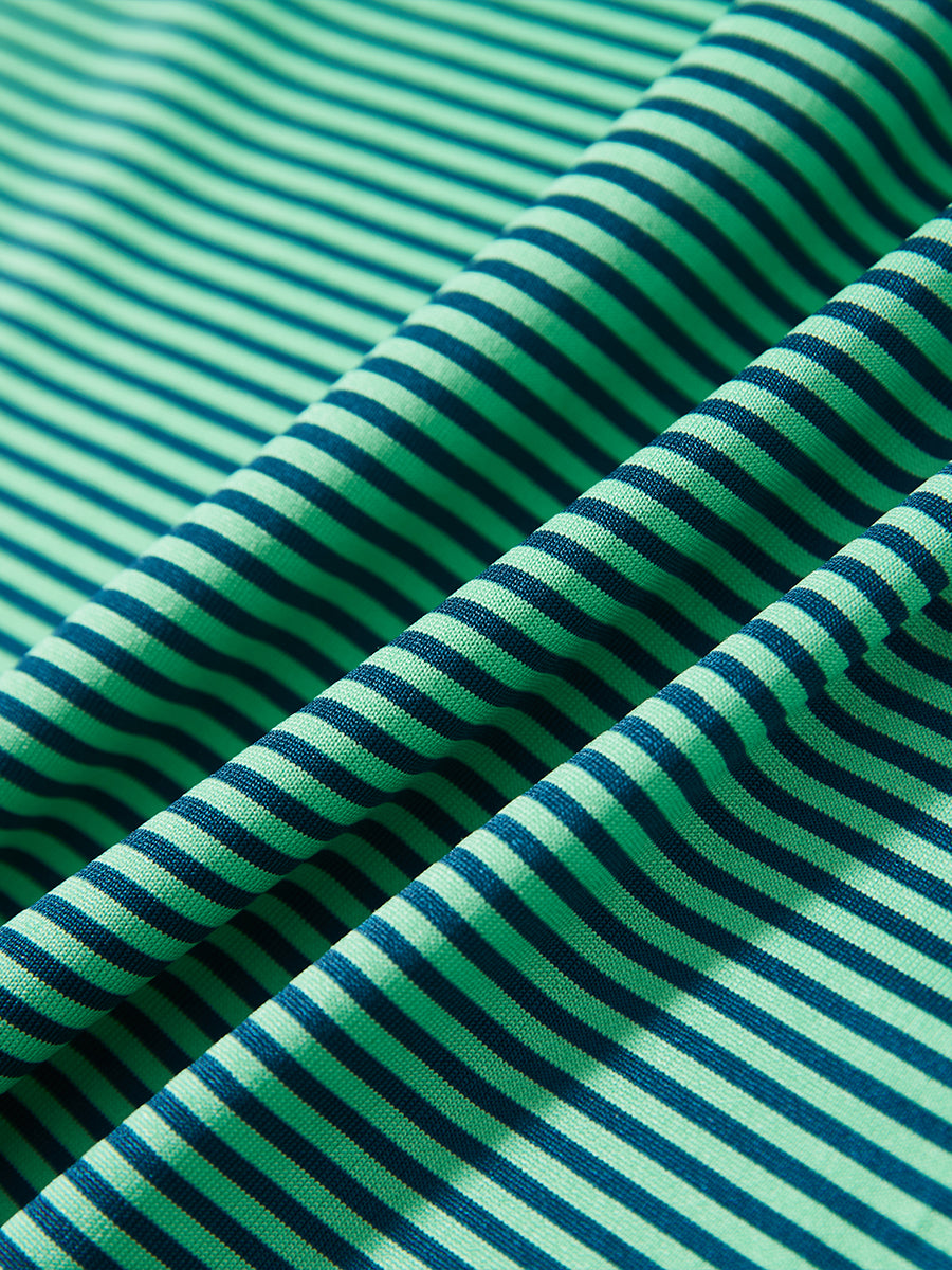Kids Stripe Golf Polos crafted from polyester spandex striped jersey. Lightweight, moisture-wicking, quick-drying, UPF 30+, soft hand-feel, 4-way stretch for comfort and breathability. Special construction ensures a no-curl collar and maintains shape.