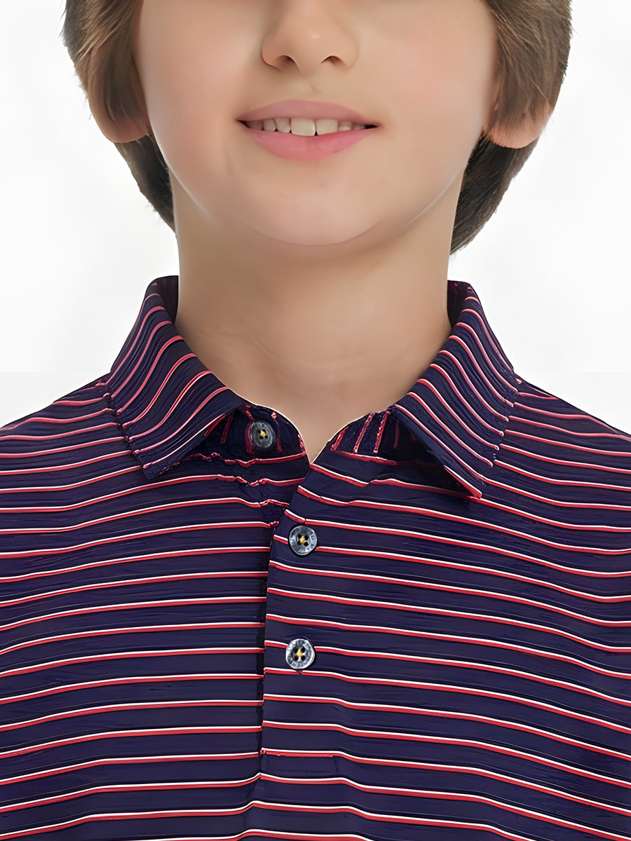 Discover the versatility of our Youth Performance Golf Polos. Style meets functionality in these boys' golf shirts featuring a no-roll collar, tag-free design, and durable stitching. Easy to care for, they maintain softness and shape wash after wash. Stay comfortable all day with quick-dry, moisture-wicking, stretch, and breathable fabric.