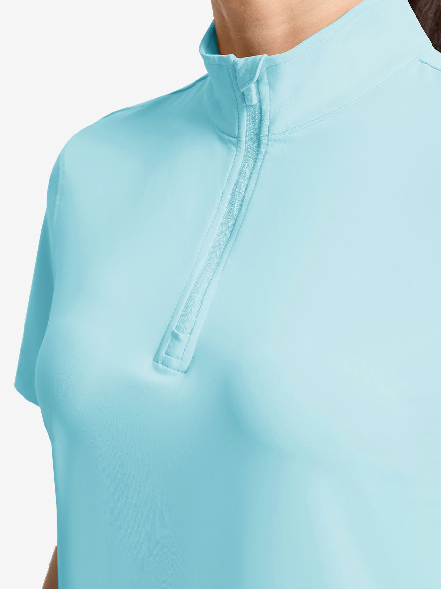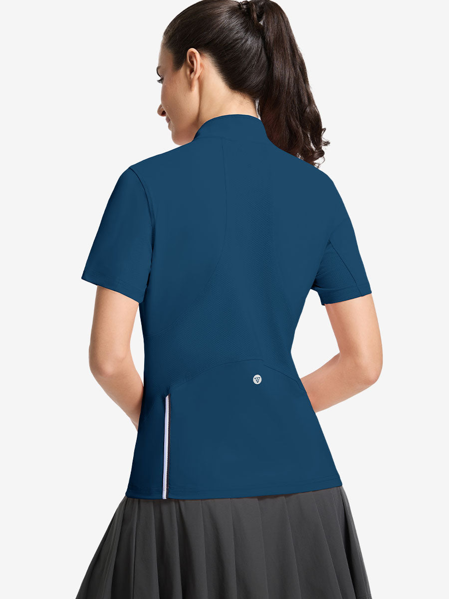 Stay cool and stylish in our Women's Breathable 1/4 Zip Pullover Golf Shirts. Designed with targeted breathable, moisture-wicking fabric at the back and underarms for all-day comfort. The ¼-zip front offers easy wear and a clean mock neck for a polished look, while the versatile design transitions seamlessly from golf and yoga to office or errands. Lightweight, functional, and effortlessly chic!