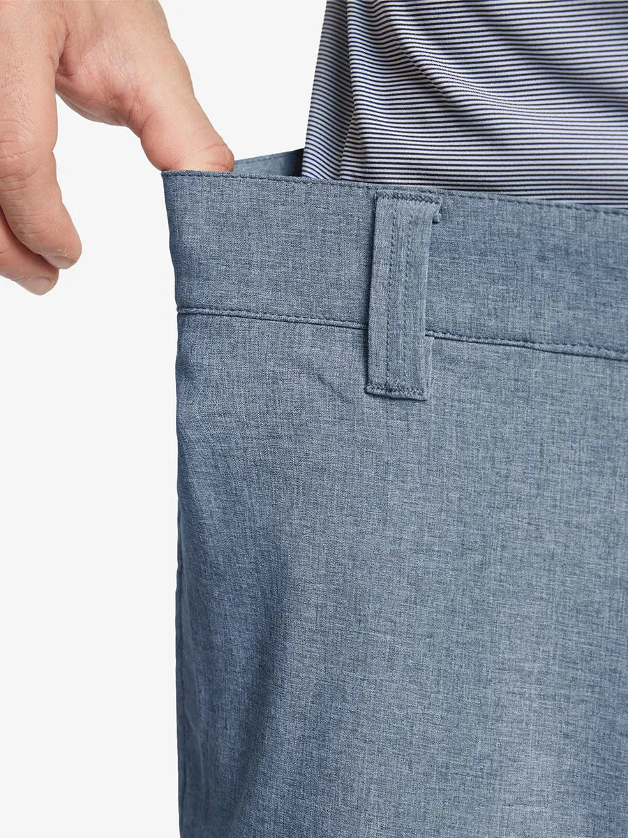 Presentamos nuestros pantalones cortos de golf Heather Performance, diseñados para ofrecer comodidad y flexibilidad con materiales respetuosos con la piel y una excelente elasticidad. Estos pantalones cortos para hombre cuentan con propiedades de absorción de humedad, secado rápido y UPF 50+ para una mayor transpirabilidad y frescura. Mejorados con elegantes detalles jaspeados, son perfectos para el campo de golf o para uso casual, combinando moda con funcionalidad sin esfuerzo.