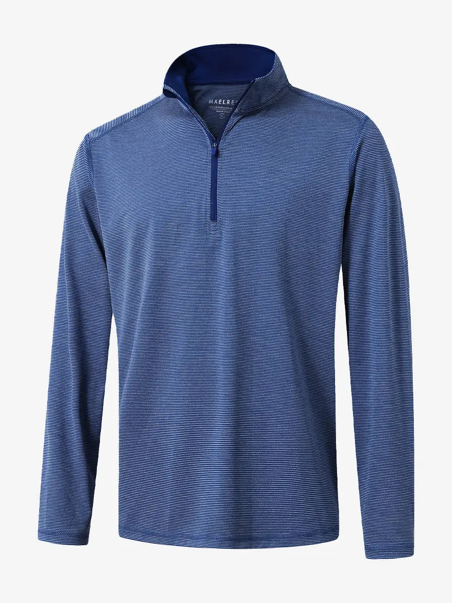 Our men's quarter zip pullover is made from high-quality yarn-dyed striped polyester, offering moisture-wicking, breathability, UPF30+ protection, and 4-way stretch for ultimate comfort. The stylish design features a 1/4 zipper for easy wear and a mock neck for UV protection and warmth. Ideal for outdoor activities and athletic performance.