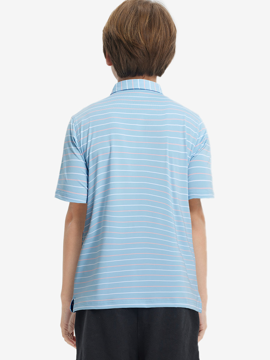Presentamos nuestros polos a rayas modernos para niños. Hechos de una mezcla de poliéster y elastano de alta calidad, estos polos suaves, agradables para la piel y ligeros mantienen a tus pequeños frescos y secos en climas cálidos. Con tela elástica en 4 direcciones y un teñido de primera calidad, esta vibrante camiseta de golf juvenil se mantiene duradera lavado tras lavado, perfecta para niños activos que aman jugar.