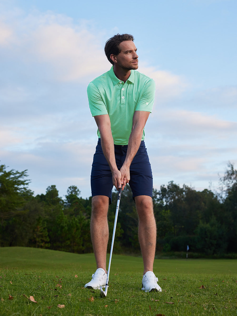 Stay cool and stylish in our high-performance polo shirt. Crafted from breathable fabric that wicks away moisture, it regulates body temperature and prevents overheating. With exclusive jacquard patterns, a classic collar, and 3-button design, this golf shirt exudes sophistication on and off the course.
