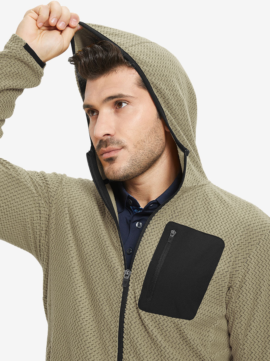 Stay warm in style with our Full Zip Fleece Hoodied Jacket. Crafted from double-sided fleece, it offers cozy warmth without the bulk. Soft, insulating, and durable, this jacket ensures comfort for daily wear. Featuring elastic trim at the hood edge, cuffs, and hem, it provides a flexible fit that seals out cold air, reduces heat loss, and offers lasting comfort for outdoor or casual activities.