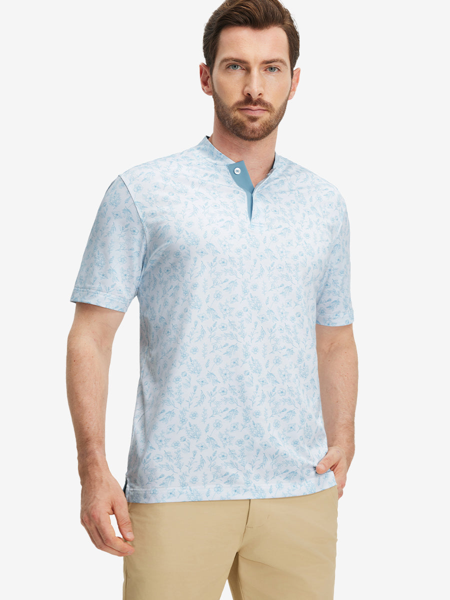 Stretch Printed Collarless Henley Golf Shirts